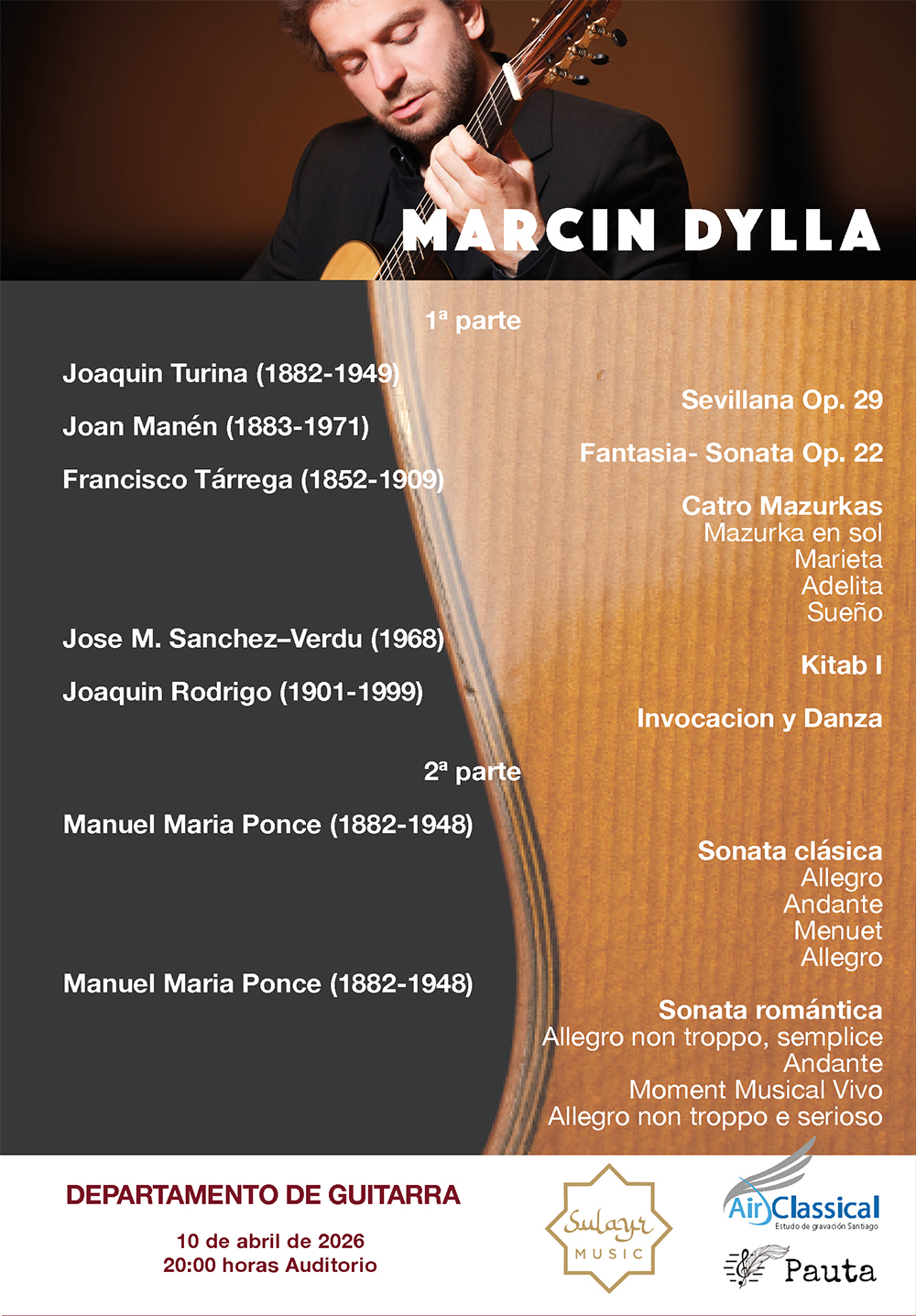 Programa do concerto de Marcin Dylla o 10 de abril de 2026